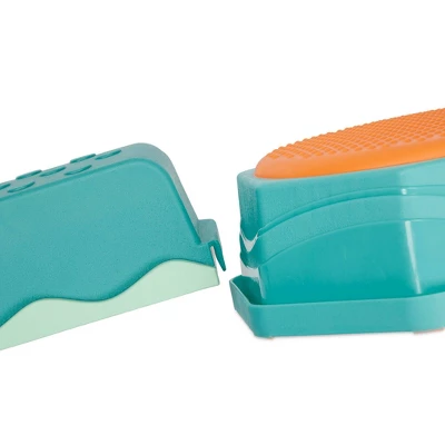Keep your balance and step from stone to stone with the Balance & Built Set from B. toys! This colorful balance beam set is a versatile toy that lets kids get creative as they stay active. It features 8 beam sections and 5 sensory step-stones to connect and build a balancing course with! Children can create endless combinations thanks to simple, versatile design – just line up the happy faces on the beams and press down. Balancing is always tons of fun, but wait until you get to the step-stones! They’re sensory, with bumpy designs that’ll add a lil’ tactile fun to playtime. Build one long beam, a zig-zag course, or anything else you can dream up – it’s a snap! Playing with this balance beam set even contributes to kids’ physical development – it improves their gross motor skills and keeps them active. Not to mention, this set stores easily by stacking the beams and footpads! Recommended for kids 3 years and over.
