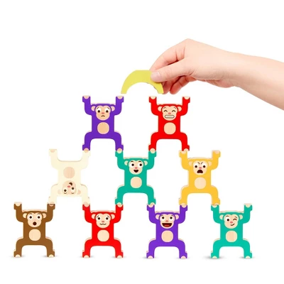 - Stacking Playset: Stack, match, balance, and learn with colorful monkey and fruit toys.