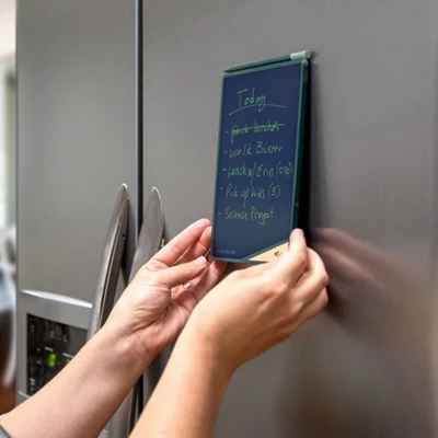 The VersaBoard reusable writing tablet is perfect for writing down household reminders, grocery lists, or family messages and is great alternative to paper notepads or dry erase boards. It’s an ideal size for hanging on your refrigerator using the included magnets, but can also live on its own, standing upright on any tabletop with the built-in kickstand that can be displayed in portrait or landscape. The new VersaPencil stylus allows you to be intentional when erasing. Tap the eraser end of the stylus to the corner of your board, unlocking Boogie Board’s QuickClear technology. The built-in magnets on the sides of the board and pencil slot allow the VersaPencil to attach to almost any side of the writing tablet, so it’s not easily lost.