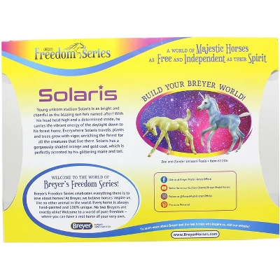 Young unicorn stallion Solaris is as bright and cheerful as the blazing sun heβs named after! With his head held high and a determined stride, he carries the vibrant energy of the daylight down to his forest home. Everywhere Solaris travels, plants and trees grow with vigor, enriching the forest for all the creatures that live there. Solaris has a gorgeously-shaded orange and gold coat, which is perfectly accented by his glittering mane and tail.