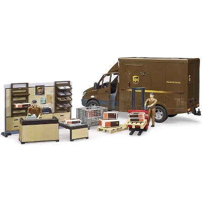 UPS, one of the world’s leading package delivery companies, not only offers its customers pure parcel shipping. UPS stores offer customers a wide range of services including print services, mailboxes and, of course, UPS’ global shipping solutions. There is now a UPS store from BRUDER with equipment and figure. Here, parcels can be picked up and dropped off, shipping boxes purchased and other services used. The employee included in the set will be happy to help. The UPS store is the perfect addition to the UPS vehicles from Mercedes (item no. 02538), MACK (item no. 02828) and Scania (item no. 03581) already in the BRUDER range. And of course, the UPS parcel shop is easy to combine with the other bworld themed sets. bworld is the toy world of BRUDER. It is made up of moving figures, animals, accessories and, most recently, also themed sets, and is assigned to the well-known BRUDER categories. Whether as a driver, rider, water sports enthusiast, or in the hospital ward or motorcycle workshop, bworld items provide hours of fun on their own or make the perfect addition to the detailed vehicles. With the new themed sets you can dive even deeper into the world of Bruder. Printed wall elements with easy-to-mount adjustable feet now form the space for even more reality when playing and the new shelving system can also interact with the elements.