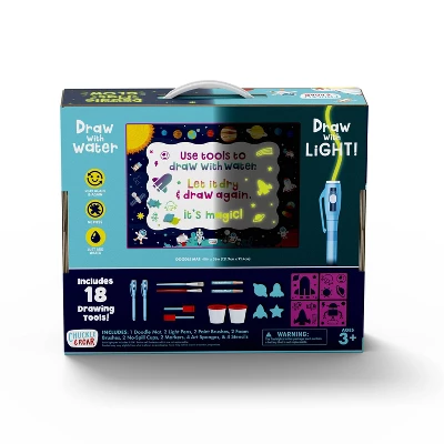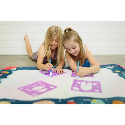 Our Aqua Draw Doodle Mats are the perfect no-mess creative activity, and now, your little artist can draw with water AND light! This Aqua Draw Doodle Mat GLOW set features a jumbo 4’ x 3’ Doodle Mat and 18 drawing tools! Let it dry and draw again, it’s never-ending, magical fun!