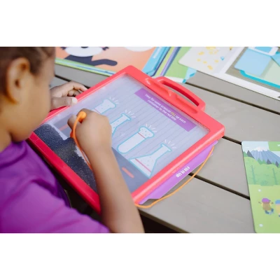From funny faces to learning basics, there’s plenty here to keep your lil one smiling. Use the magnetic pen to make magnet art! This Magna Sketch board includes a tethered magnetic pen, and 25 activity cards. All 25 cards neatly store on the back. Perfect for both Independent Activities and Free Play!