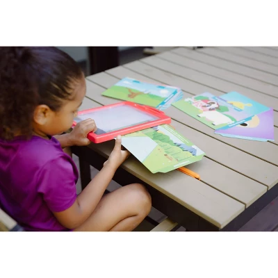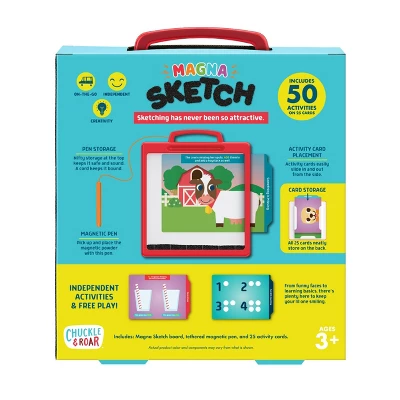 - Includes: Magna Sketch board, tethered magnetic pen, and 25 activity cards.
