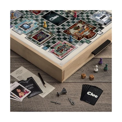 This Clue Luxe Edition combines beauty and elegance with a twist on the classic detective game. Swing into the roaring 20s while you unlock the secrets of Clue at the Roaring Ritzy Hotel! With lush Art Deco illustrations, this gorgeous edition features a solid maple wood cabinet with an integrated storage drawer and die-cast metal drawer pull. The striking foil-stamped Clue game board is built into the cabinet. Richness abounds in this 20s-themed set with premium components, including wood and die-cast metal tokens, metal weapons, foil-stamped solution envelope, and a boxed set of illustrated Clue cards.Was it Miss Scarlett, the flapper? Or Green, the gangster? Solve it first and you’re the bee’s knees!Contents:Deluxe solid maple wood cabinet with storage drawerDie-cast metal drawer pullBuilt-in foil-stamped Clue game boardWood and die-cast tokensDie-cast weaponsIllustrated cards with card boxDetective notepadFoil-stamped solution envelopeWood dicePencilsInstructions