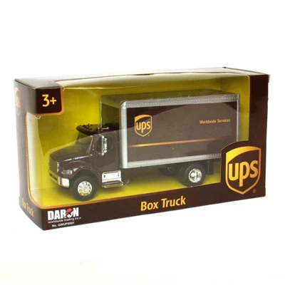 This 1/50 scale UPS truck is made from Daron Worldwide Trading Inc. The UPS truck is made from durable plastic with rubber wheels. The back doors of the box truck swing open allowing you to add your cargo to the truck (cargo not included). This item is recommended from the manufacturer for ages 3+ years and up.