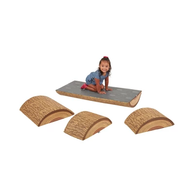 Bring the magic of outdoor adventures inside with the SoftZone Tree Log Climber Set! This open-ended play set is a safe way to encourage imaginative and active play. Designed for everyday use in daycares, preschools, classrooms and perfect for home, this 4-piece woodland inspired playset lets you set up different configurations to keep playtime open-ended and fresh. Set the tone for lifelong healthy habits while having fun, this set will help children develop motor skills as they crawl over and around each foam piece. Flip the logs over and your little one can practice balance and coordination on the rocking surface. The options for role play are endless — set the pieces obstacle course, kids can pretend that they are deep in a forest, exploring a swamp, or gallivanting around the setting of their favorite story. Individual logs can be used as flexible seating for a comfy seat during story time. The soft foam core of each piece is covered in vegan leather and features a non-slip base for added stability while in use. This activity playset is GREENGUARD [GOLD] Certified for low VOCs, CPSIA compliant, and adhere to CAL TB 117 requirements. Constructed with certified flexible polyurethane foams that meet CertiPUR-US program standards. | 4-piece set includes 1 long, 1 medium, 2 short logs | Standout Features: woodland design makes for stimulating imaginative play; strengthen early muscle movement, physical coordination and balance; non-slip base helps with balance and keeping climbers in place | Floor Climbers: Create a fun and exciting obstacle course that encourages important gross motor skill development for your little one |