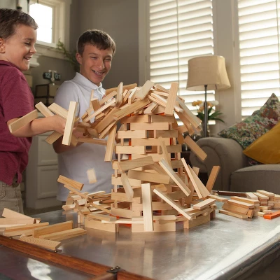 - INCLUDES 270 NATURAL-FINISH PLANKS, 30 ORANGE PLANKS; Comes with a canvas storage bag