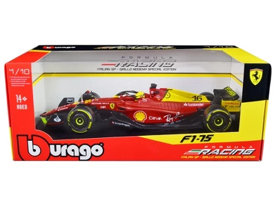 Brand new 1/18 scale diecast car model of Ferrari F1-75 #16 Charles Leclerc “Giallo Modena” 2nd Place Formula One F1 Italian GP (2022) “Formula Racing” Series die cast model car by Bburago.Brand new box.Real rubber tires.True-to-scale detail.Has steerable wheels.Detailed interior, exterior.Officially licensed product.Does not have any openings.Manufacturer’s original unopened packaging.Made of diecast metal with some plastic parts.Dimensions approximately L-12, W-4, H-2.25 inches.Please note that manufacturer may change packing box at any time. Product will stay exactly the same.