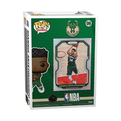 Commemorate an iconic sports trading card for your NBA collection with the Pop! Trading Card Giannis Antetokounmpo. The collectible features a Pop! Giannis Antetokounmpo figure, wearing his green Milwaukee Bucks uniform, which matches the included trading card art, and comes prepackaged in a protective case that can be hung on your wall! Vinyl figure is approximately 4.5-inches tall. Approximate dimensions of protective case: 7.5”W x 10.5”H x 3.25”D