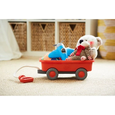 - Green Toys Wagon features a 100% cotton rope handle that easily tucks inside for convenient safe storage