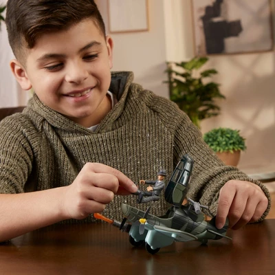 Soar into action and adventure with the Indiana Jones Worlds of Adventure Doctor Jürgen Voller with Plane figure & vehicle set! This 2.5-inch-scale Indiana Jones action figure features fully poseable arms, legs, and head, as well as design and detail inspired by the Indiana Jones entertainment. Kids ages 4 and up will love re-creating favorite moments with this Indiana Jones gift set, featuring rolling wheels, spinning propellers, opening canopy, rotating turret, and tow hook, as well as a projectile launcher for explosive fun! Worlds of Adventure toy figures for kids make a great introduction to the adventures of archaeologist Indiana Jones and make great Indiana Jones action figure gifts for 4 year old boys and girls. If adventure has a name, it must be Indiana Jones!