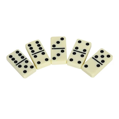 - 28 double-six ABS, professional level ivory-toned domino tiles with black pips/dots