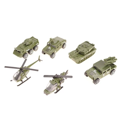 Diecast military vehicles playset for kids. Includes tank, military truck, panzer, anti-air vehicle, attack helicopter, and scout helicopter. Great for birthday gifts and party favors. Made out of safe non toxic material. Vehicles have moveable parts that can rotate. The perfect toy set for kids of all ages for hours of pretend play. Lets kids be creative and pretend to play for hours! Easy to use and made of non toxic materials.