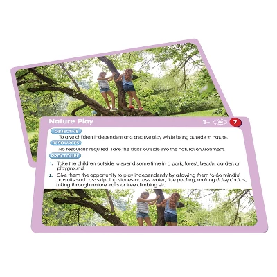 - Each activity card is double-sided with a colorful image on one side to engage and inspire children how to carry out each activity