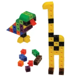 - Features cubes, rectangles and notched squares to creatively stack on the curved balance board