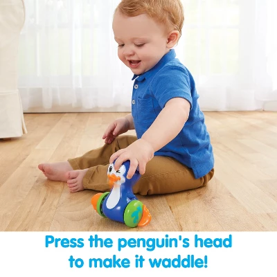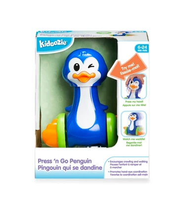 - Child Development: The Press ‘n Go Penguin can help your baby develop hand/eye coordination by pressing the top of its head. It also helps teach cause and effect. When you press the head, the penguin waddles!
