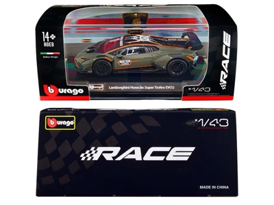 Brand new 1/43 scale diecast car model of Lamborghini Huracan Super Trofeo EVO2 #63 Matt Green with Black Top and Graphics “Roger Dubuis” “Race” Series die cast model car by Bburago.Brand new box.Has a roll cage.Real rubber tires.True-to-scale detail.Detailed interior, exterior.Officially licensed product.Does not have any openings.Comes in plastic display showcase.Made of diecast with some plastic parts.Dimensions approximately L-4 inches long.Manufacturer’s original unopened packaging.Please note that manufacturer may change packing box at any time. Product will stay exactly the same.