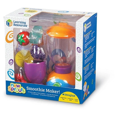 Stir up hours of learning play with this pretend blender and fruit set. Your kids will learn about good eating habits while they spend endless hours engaged in imaginative role-play. Plus, the Smoothie Maker! helps engage little ones in building language and social skills. Made from durable, crush-resistant plastic, these play pieces will provide years of learning fun. And the blender really makes sound!