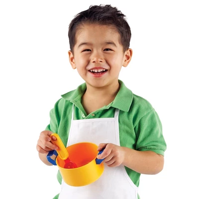 - Familiar, brightly colored cookware helps children develop imaginative play skills