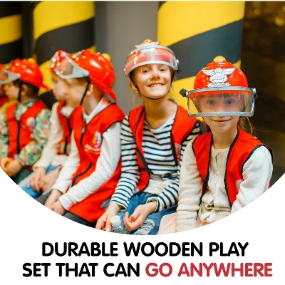 - DURABLE WOODEN PLAY SET THAT CAN GO ANYWHERE: You can pack up this educational fire truck playset and bring it everywhere with your family. Let your kids play with it at the airport, at your work, at home, or even outside. Sit back while they create stories and characters that will help them develop their social skills.