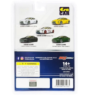 Brand new 1/64 scale diecast car model of Lexus LC500 Yellow Metallic with Black Top and White Interior “1st Special Edition” Limited Edition to 960 pieces die cast model car by Era Car.Brand new box.Real rubber tires.True-to-scale detail.Comes in a blister pack.Detailed exterior, exterior.Officially licensed product.Has opening hood and doors.Dimensions approximately L-3 inches long.Manufacturer’s original unopened packaging.Made of diecast metal with some plastic parts.
