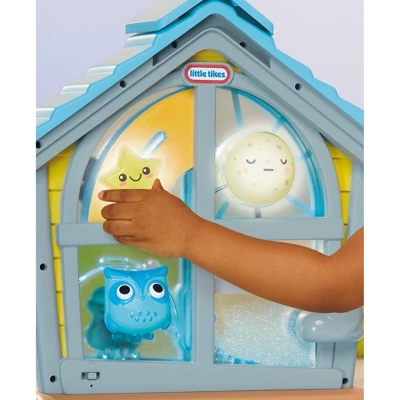 - 2-SIDED PLAY – Discover interactive activities on the day or night side. Touch the sun or moon to see it light up. Move the cloud to make it rain glitter inside the windowpane.
