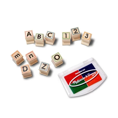 - Deluxe wooden letter and number stamp set with 25 stamp-and-learn activity book