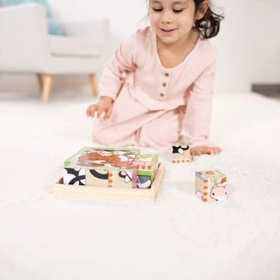 Six puzzles in one! There are 16 solid wooden cubes in this unique puzzle. Rotate the cubes in the included wooden tray to complete colorful pictures of six different farm animals. (The border design provides a helpful hint!) This product is certified by the Forest Stewardship Council. FSC certification ensures that products come from responsibly managed forests that provide environmental, social, and economic benefits, and that forests are protected for future generations. Please note that FSC certification applies to new inventory only (FSC C156584).
