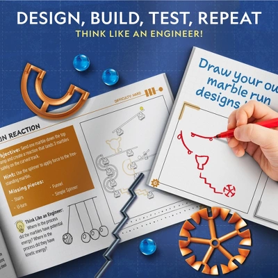 Explore physics and engineering with the six different types of tracks and six trick pieces, creating astonishing chain reactions and intricate paths for your marbles! And like all National Geographic STEM kits, the 50-Piece Magnetic Marble Run includes a detailed, illustrated Learning Guide to teach the science behind all the fun. Learn how to think like an engineer with an understanding of Newton’s laws of motion, gravity, energy and more!