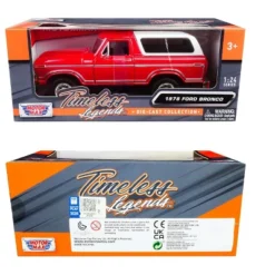 1978 Ford Bronco Custom Red And White “Timeless Legends” Series 1/24 Diecast Model Car By Motormax
