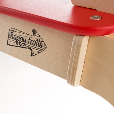 - PRODUCT DETAILS- Materials: Birchwood plywood, Colors: natural wood and red. Dimensions: (L) 26” x (W) 7” x (H) 19” x (W) of seat-5” of base- 8.5”. Recommended for children ages 1-3.