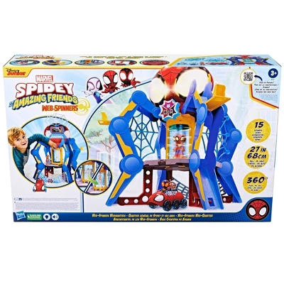- TEAM SPIDEY’S WEB-QUARTERS IS BIGGER AND BETTER: When Zola, the new baddie in town, destroys Team Spidey’s headquarters, Iron Man helps them build and create their new home base with even cooler features than ever before! The Web-Spinners Web-Quarters playset stands 27 inches (68 centimeters) tall and features updated design and deco inspired by Season 3 of Spidey and His Amazing Friends.