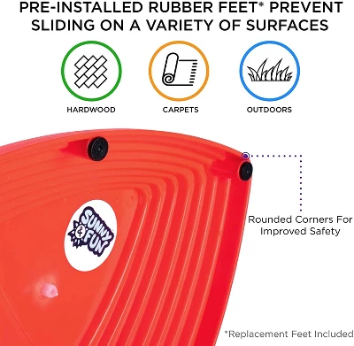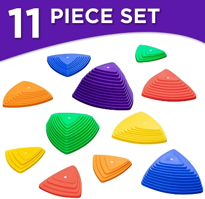 Step into fun! Bring a fun, educational toy to your child’s next play date with this 11-piece set of Balance Stones from Sunny & Fun. These stones are designed to look like real rocks but are lightweight, stackable, and durable. Balance stones come in a variety of colors and sizes from small to extra-large. Kids can create their own multi-level obstacle course. They can practice color identification while improving their coordination and self-confidence. As they step, jump, stretch, and climb, kids get a great full-body workout in any indoor and outdoor setting. The stones have pre-installed rubber feet which prevent sliding on a variety of surfaces. The triangular-shaped stones are hollow for easy storage. The kit also includes 6 extra replacement feet to prevent future accidents. Parents: it’s time to step up your game! Give kids an awesome on-their-feet challenge for better strength and balance!