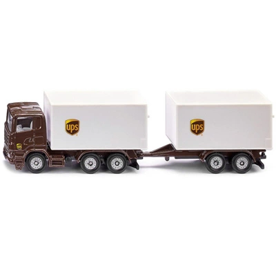 Brand new diecast models of “UPS Logistics” Set of 3 Pieces die cast models by Siku.Brand new box.Real rubber tires.Officially licensed product.Detailed interiors, exteriors.Forklift lift raises and lowers.Truck trailers have opening rear gates.Made of diecast with some plastic parts.Manufacturer’s original unopened packaging.Approximate dimensions L-2.75-3 inches long.THIS SET INCLUDES FOLLOWING MODELS:1) Delivery Van Brown “UPS”.2) Forklift Brown and Yellow with Pallet and Boxes “UPS”.3) 3 Axle Semi Truck Brown with Double Pup Trailers “UPS”.