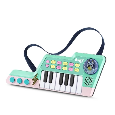 - This kiddo-sized keytar looks just like the one on the show Bluey; makes a perfect musical instrument for a child’s birthday present or holiday gift